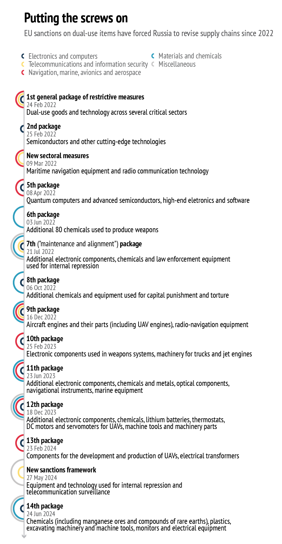 Second, to weaken Russia’s ability to wage its imperial war on Ukraine, the traffic in sensitive hardware – frequently used as makeshift substitutes for sanctioned components – should be better regulated through tighter export controls. Take the example of the previously mentioned Kh-101 cruise missile used to hit a children’s hospital in Kyiv in July, reportedly containing dozens of foreign-produced parts – many from Western companies including Texas Instruments and Intel. What will the bricoleur do when he finds his local hardware store empty?