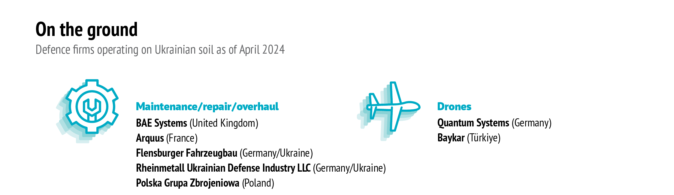 Significant resources, both in time and money, are currently spent on transporting Western equipment from the frontlines to repair depots in Poland, Slovakia or the Czech Republic (7). If more Western armoured vehicles and howitzers could be maintained and repaired in Ukraine, that equipment can be returned to the frontlines much faster and at lower cost. Some Western companies are already on the ground in Ukraine, employing local expertise. BAE systems opened an office in Kyiv in August 2023 and later that year teamed up with the maintenance company AMS to offer repair and support services in Ukraine for the BAE-manufactured artillery systems donated by the United Kingdom (8). Similarly, in October 2023, another European defence giant, Rheinmetall, established a joint venture with UDI to maintain and repair armoured vehicles in Ukraine (9). Meanwhile, German company Flensburger Fahrzeugbau is reportedly already building a repair hub in the country for donated Leopard 1 tanks (10).