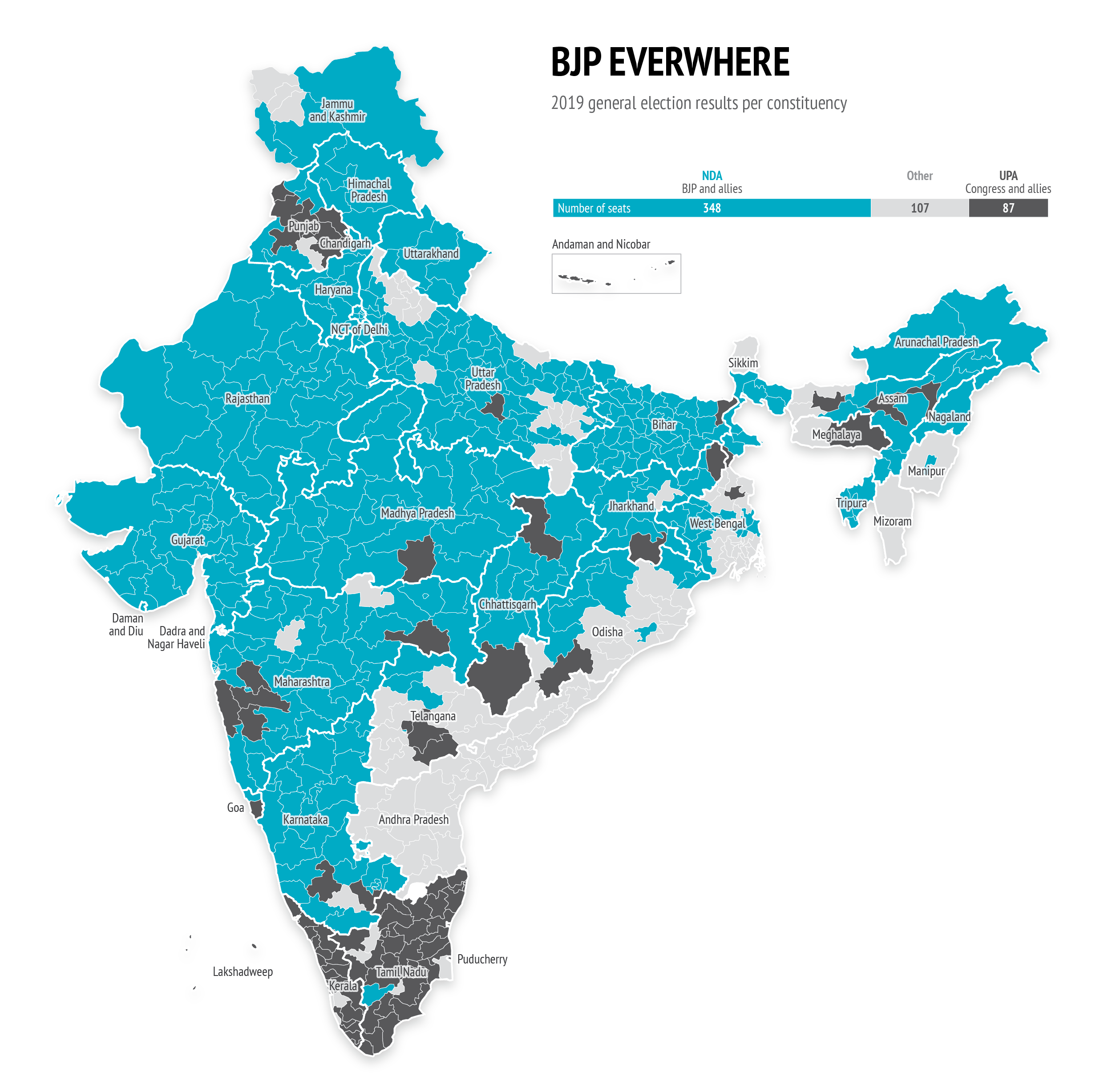 Modi’s second government has been especially focused on pushing the  Hindu nationalist agenda. In August 2019, it scrapped Article 370 of the Constitution, which guaranteed the autonomy of Jammu and Kashmir (J-K) as well as a limited degree of devolution of political power. This was a long-held goal of the Hindu nationalist ideologues, for whom the special constitutional status of J-K, India’s single Muslim-majority state, embodied the supposedly exorbitant privileges given to the Muslim minority by India’s secular state. In the two months that followed the revocation of art. 370, a total of 177 political leaders were detained in Kashmir (4). A near-complete internet blackout was imposed on the newly formed Union Territory of J-K for nine months (5).