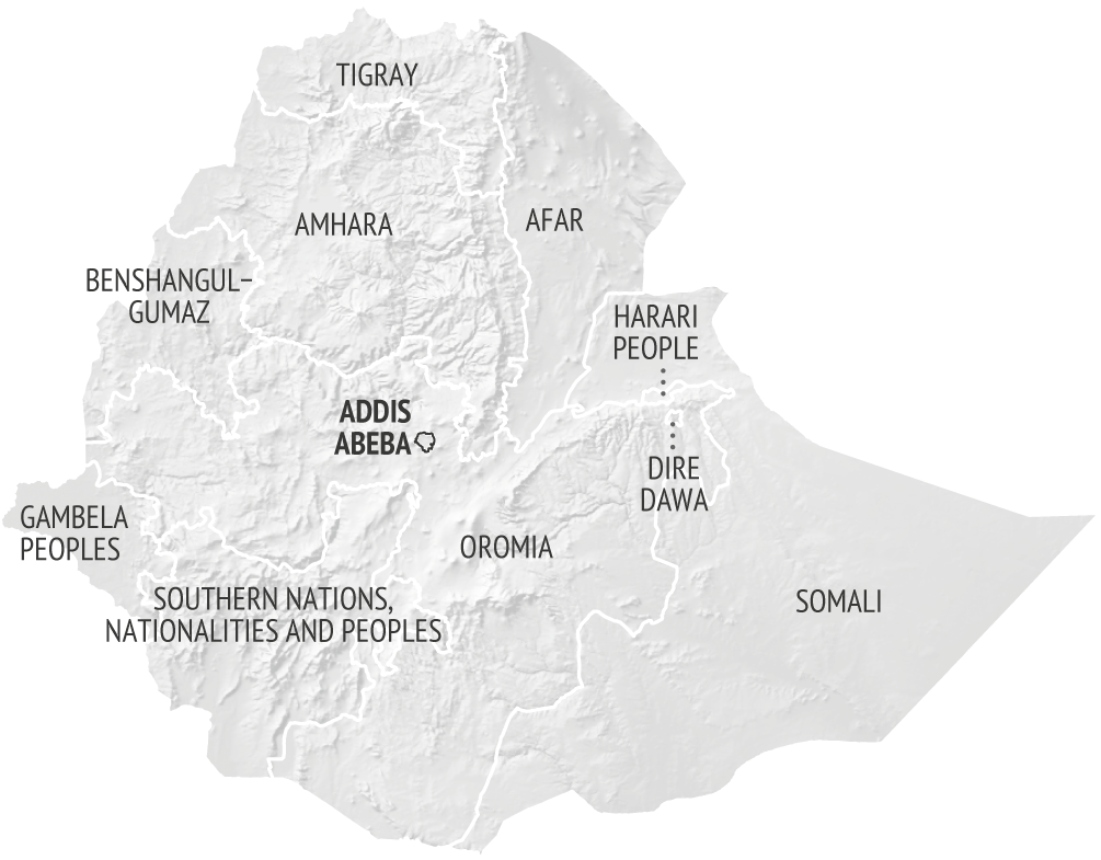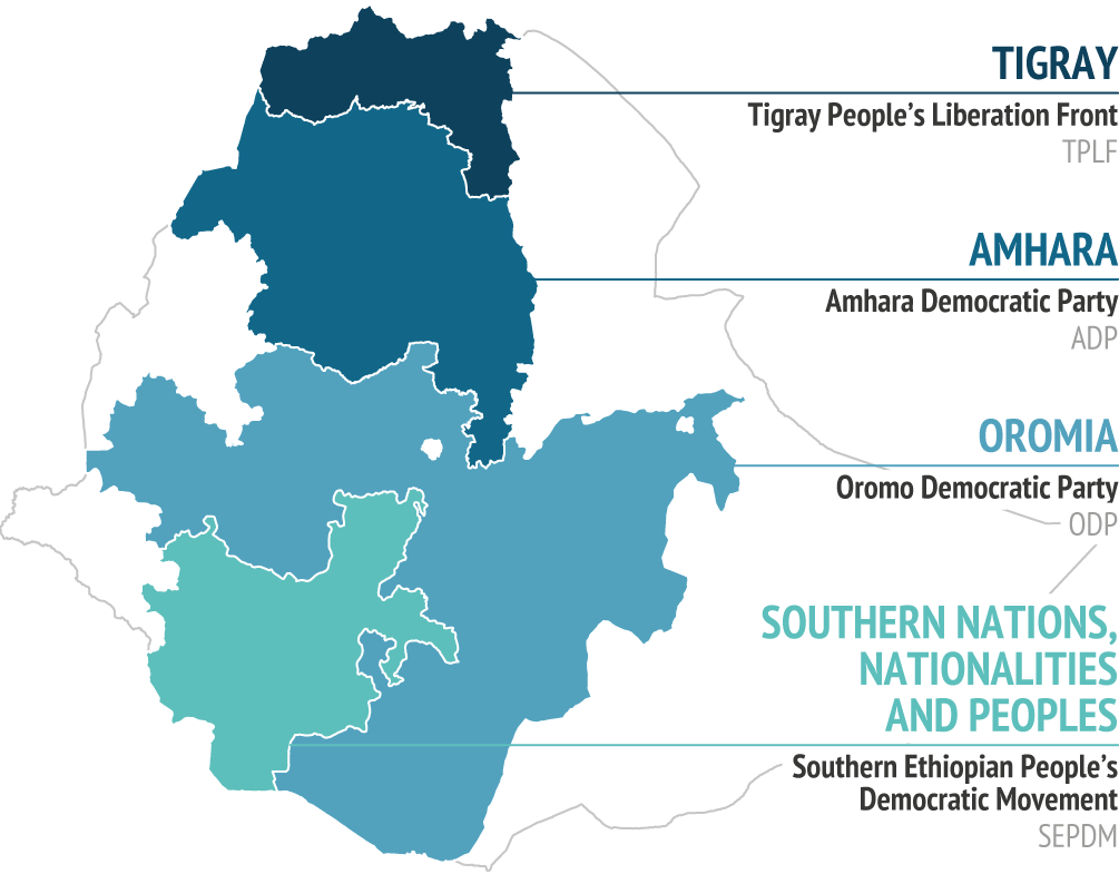 The structural causes of Ethiopia’s fragility date back to the end of the Derg regime, the military junta that ruled the country from 1974 until 1991. Back then, a coalition of rebel forces, the Ethiopian People’s Revolutionary Democratic Front (EPRDF), defeated the regime.2 The EPRDF was composed of four political entities: the Tigray People’s Liberation Front (TPLF), the Amhara National Democratic Movement (ANDM), the Oromo People’s Democratic Organisation (OPDO) and the South Ethiopian People’s Democratic Front (SEPDF). The constitution ratified in 1994 established a multicultural federation based on ethno-national representation, transforming Ethiopia from a centralised state into a federal one.