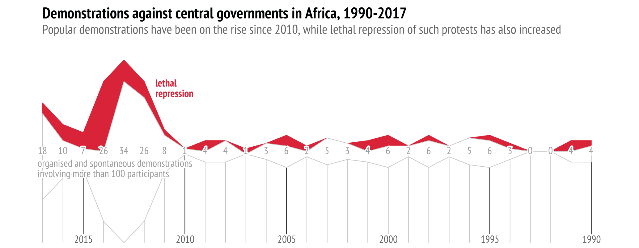 Relatedly, non-violent campaigns are more likely to generate a political ‘jiu-jitsu effect’ whereby repression backfires and leads to increased mobilisation and political support for the opposition.7 Using coercive force against unarmed protesters runs the risk of creating a backlash even in an autocratic setting; it can induce domestic and international condemnation of the regime and lead to the regime being shunned by its key supporters. The relationship between a country’s armed forces and the opposition movement is particularly crucial. For the military, a non-violent opposition poses less of an existential threat than a violent rebellion and therefore it can be seen as a possible bargaining partner.8 Orders to violently suppress unarmed resistance may lead to defections within the armed forces, which often shapes the outcome of non-violent uprisings.